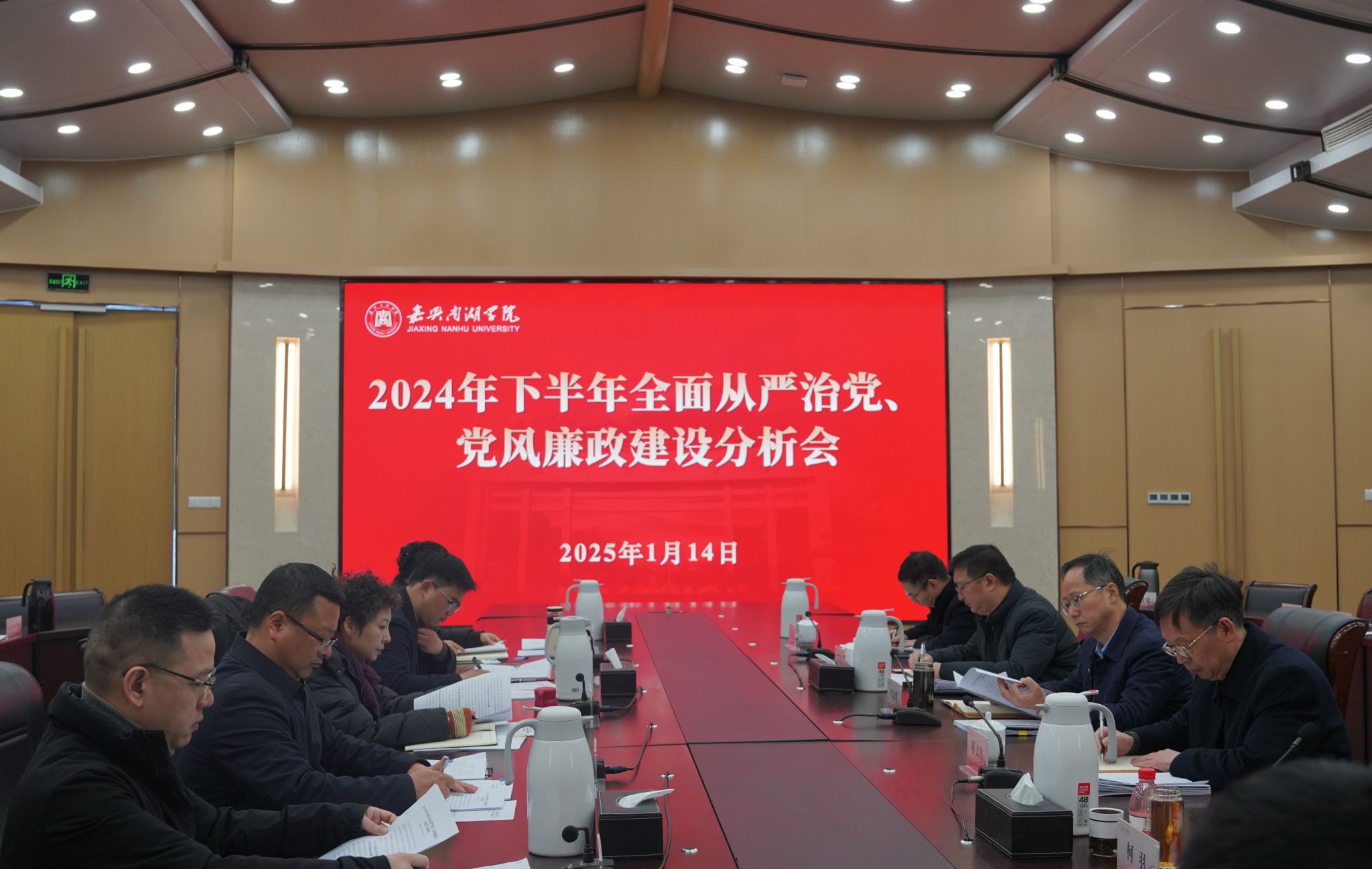 1月14日上午,学校召开2024年下半年全面从严治党、党风廉政建设分析会。校党委书记倪沪平主持会议。校领导贾文胜、柯羽、胡文蔚、蒋文波、朱蓉、李泉明、赵渊、沈岱峰、蒋娟芬、庄应强参加会议。
